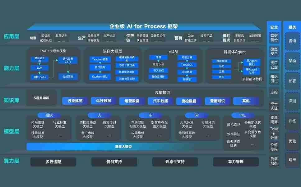 端到端的一站式AI工作空间深度融合了从企业战略规划到日常经营的全流程业务板块,,,,定向解决车企内部领域多、、部门多、、链条长、、、、场景碎片化等难题,,支持车企快速构建以AI为核心的生产力写作体系,,实现任务执行与AI能力的无缝集成与交互